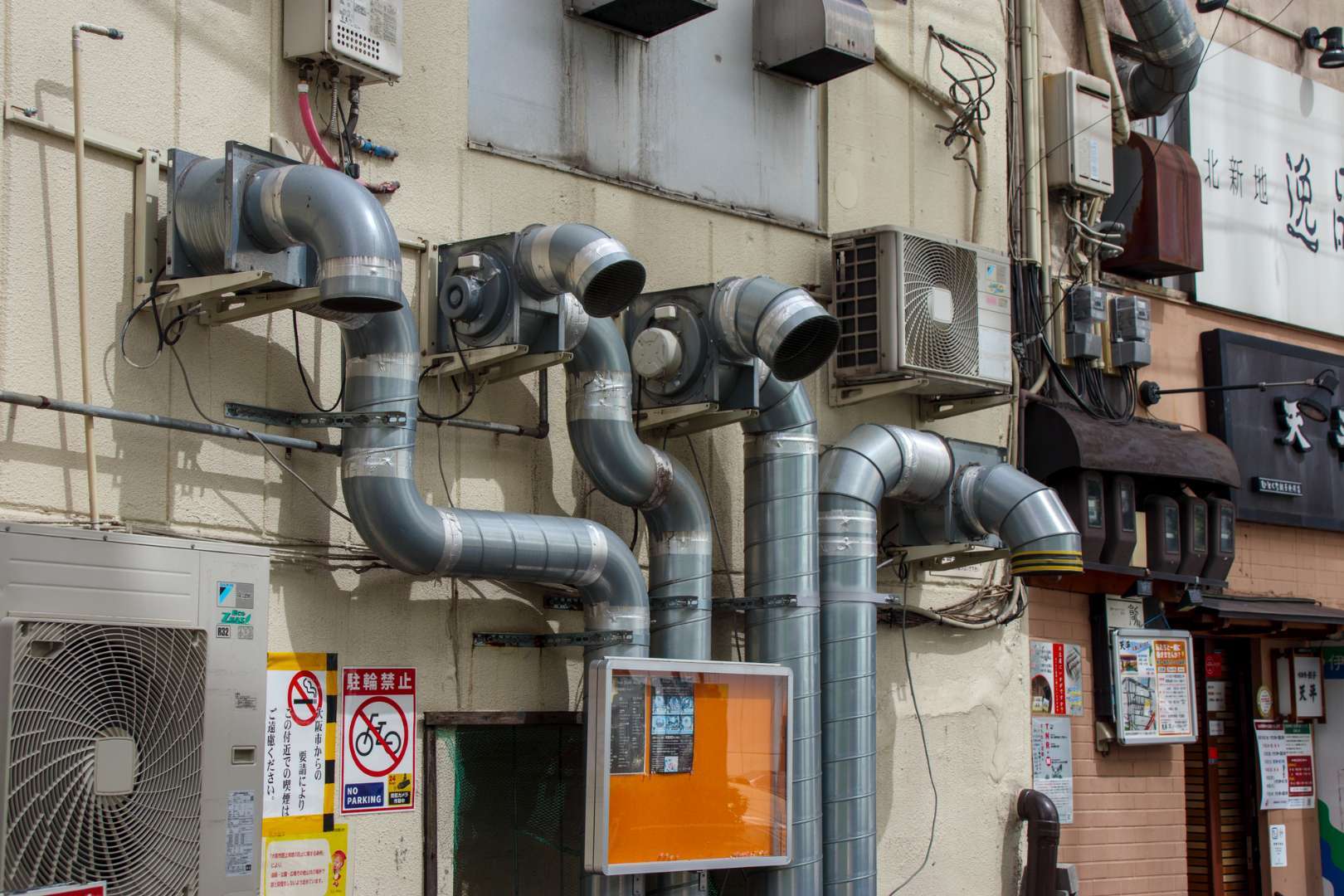 わかりやすいのは、焼肉屋さんの焼き網の上に設置されている、煙を吸い込むためのダクトでしょう。あれと同じようなものが、さまざまな場所に設置されており、空気環境の維持に役立っています。